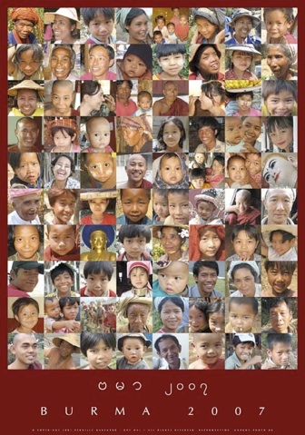 Vi har taget en masse dejlige og udtryksfulde portrætter af børn, voksne og ældre fra Burma. De 80 bedste af disse fotos har vi sat op på en flot plakat, som vi har solgt til fordel Burmas befolkning.